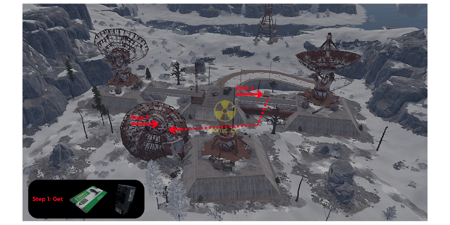 - Bring a Green Keycard and a Fuse to the Satellite Dish Monument